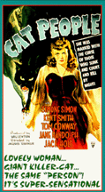 A fun, hokey horror flick about a weird-looking Croatian gal (Simone Simon) who carries an old-world curse that prevents her from falling in love, lest her passion turn her into a man-eating were-panther. In case the plot's psychological ramifications were lost on you the first time, the cast also includes a suave psychiatrist who gets hired by the cat lady's frustrated newlywed husband, to tell her that these marital problems are all in her head. He finds out differently when her strange allure leads him into some mighty unprofessional doctor-patient relations: kiss-kiss, claw-claw!! Naturally, this B-movie classic has plenty of screamingly hilarious MST3K-worthy moments, particularly around the strained domestic life of the newlywed couple. Also has some nice "serious" cinematic touches. (Remade in a more sexually explicit 1982 version starring Natassja Kinski as the cat lady. Weird cast note: Simon is a dead ringer for '90s "teen" actor Katie Holmes... now that's scary!!)