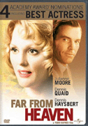 Todd Haynes homage to '50s Technicolor melodrama master Douglas Sirk really is a marvel. His work with cinematographer Edward Lachman, in which they painstakingly recreate Sirk's tightly crafted color design, gives this film an arresting look, while the acting and set design are also top-notch. Modern audiences may have trouble relating to the tongue-in-cheek, campy elements of the plot (the film is not simply an homage to Sirk, it lifts whole elements directly from various films), but that's all part of the fun... The imposition of a modernist viewpoint -- one that takes racism and homophobia into account -- onto the claustrophobic social mores of the Eisenhower Era helps give this film dramatic punch, but you also have to be willing to settle into an old-fashioned style of filmmaking to really enjoy all this film has to offer. It's worth it, though!