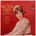 Skeeter Davis (1931-2004) was part of Nashville's half-kidding stabs at copying the "girl group" sound of the early 'Sixties... She was also a super-sincere and strikingly rural vocalist, whose plaintive style stood in contrast to the increasingly bland female vocals of the time. Her musical career started in the early '50s, as half of the Davis Sisters duo, along with her childhood friend Betty Jack Davis. They scored an early big hit with "I Forgot More Than You'll Ever Know," but the act ended tragically with a car crash that killed Betty Jack and seriously injured Skeeter. After a couple years downtime, Davis resumed her career and steadily became a favorite at the RCA studios, as well as a regular member of the Grand Ole Opry. Early albums had a bouncy, girl groupish sound, and her trademark multi-tracked self-harmonizations (ala Patti Page...) Skeeter's been an intriguing member of the Nashville establishment, having been chastened by the Opry hierarchy in the early '70s for publicly expressing her sympathies with some hippies who had been arrested by the Nashville police. She was re-hired by the Opry, but eventually was dumped by her label, RCA. In 1987, she married Joey Spampinato, the bassist for NRBQ, the world's greatest bar band. Davis' sometimes-reedy vocals might not be for everyone, but there's still a lot of fun stuff to be found on her dozens of albums, which sadly have spent years out of print.