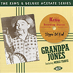 It's been so, so very long since Hee Haw has been on the air that I suppose there's no reason anymore to half-apologize for Grandpa (Louis Marshall) Jones' role on the show... (Don't get me wrong: I loved Hee Haw when I was a kid, but I'm sure for many people it was nothing more than a hallmark of cornball humor...) Anyway, it's been a long time. Finally, Jones' music -- his old stuff, made back when TV was barely a viable medium -- has emerged from underneath the long shadow of his best-known role, and now it's just out there in reissueland, plain old hardscrabble country music, the kind of stuff that only hardcore hick music weirdos (like me) can really get into. Now, if that description fits you as well, and you haven't already delved into Jones' work, then you're in for a treat. This is a top-notch collection of his earliest recordings for the up-and-coming King label, made back in the mid-1940s, when Jones worked closely with King's other country stars, particularly hotshot guitarist Merle Travis and the Delmore Brothers, whose driving rhythmic style trailblazed country music's contributions to the rock'n'roll explosion of the 1950s. Some of that fire is evident in Jones' old 78s, mostly through Travis's peppy, consistently innovative picking, which weaves throughout these discs. The material tends to be a little weird thematically -- Jones cut his teeth in country's vaudeville circuit, and he maintained his novelty-song edge throughout his career -- but he also recorded some great serious material, like his mournful 1946 hit, "It's Raining Here This Morning," and his heartfelt version of "Will You Miss Me When I'm Gone." Jones's raw, plaintive delivery was pure, old-school, pre-honkytonk country, tempered with a strong feeling for the blues... This disc might not be for everyone, but for the right old-timey/country boogie fans, it'll be pure heaven. Recommended!