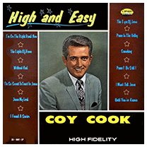 The first solo album by Alabama-born Coy Cook (1924-1996) who sang tenor with several notable southern gospel groups, including The Florida Boys and The Dixie Echoes, as well as his own group, Coy Cook & The Senators, which he formed in the early 'Seventies. Cook was still a member of The Dixie Echoes when he cut this album -- he joined the band in 1966, though it's not clear if he's backed by members of the Echoes, or any of their usual musical backup. Liner notes by ol' Jimmie Davis, giving this one the official seal of approval.
