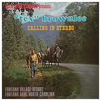 Square dance calling by Tex Brownlee, the recreation director for the Fontana Village Resort, at the Fontana Dam in North Carolina. In addition to calling and "hash" routines, Mr. Brownlee also organized horseback riding, archery and miniature golf, as pictured on the back cover. From the looks of it the tracks on this LP were originally released as singles, including several "patter" recordings and a rendition of "Country Roads."