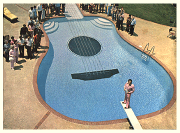 His earlier work was innovative as well -- Webb was one of the first major stars to popularize the pedal steel guitar, especially prominent on his 1953 hit, "There Stands The Glass," and 1954's "Slowly." During the 1950s, Webb was the single most successful country artist on the charts, and he flaunted his success by building a guitar-shaped swimming pool, covering the chassis of his convertable with silver dollar coins, and retrofitting the interior with Western paraphernalia. (Check out the cover of 1962's "Cross Country" album...)