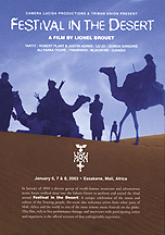 This hour-long documentary captures some of the mystery and excitement of the third annual Festival In The Desert, a multicultural music festival held in Essakane, Mali, in the heart of the Sahara Desert. The event partly centers around the ongoing cultural struggle of the nomadic Touareg tribes, whose way of life has been threatened following a prolonged drought and a failed military rebellion in the 1990s... Shots of the tribal members, many mounted on camels and wearing highly stylized clothing, are among the most evocative images in this film -- this is a culture largely beyond the reaches of Western consumer culture, and these are powerful images. Unfortunately, the film doesn't provide a very complete or very comprehensible picture of the plight of the Touareg tribes; the presentation here is cursory and fuzzy around the edges, with more allusions than information, and ultimately it's a bit frustrating. Similarly, the musical performances are a bit on the short side -- brief clips of great artists, intercut with interviews and pictures of the crowds -- and many artists are seen only in tantalizingly brief encounters. One of the most complete sequences features ex-Led Zepper Robert Plant, who's apparently gotten the Sub-Saharan musical bug, and while I guess an old dino-rocker like Plant has more celebrity draw than someone like vocalist Oumou Sangare or Malian superstar Ali Farka Toure, it still seems like the locals are getting shortchanged a little. (I assume the clipped pace of the film was a result of trying to keep it under an hour in length, so that it could be broadcast on televison, but it's still a bit regretable...) Nonetheless, there are some great artists to be seen here, including Sangare, the eclectic French world-beat ensemble, Lo'Jo, and the electrified Touareg jam band, Tinariwen, whose extended family ambience and loose, relaxed stage presence make them seem quite a bit like an African version of the Grateful Dead (and I mean that in a good way!) All in all, this film provides an rich glimpse into a distant culture, as well as tantalizing exposure to some of the greatest musicians in Africa... It's certainly worth checking out!