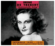 A 2-CD set of early-1940's material by Irene de Trebert, a jazz-oriented swing singer and actress who favored uptempo material, perhaps closer in temperament and talent to Marion Hutton than to Ella Fitzgerald, but fun either way. She was married to bandleader Raymond Legrand, who provides backing on most of these three dozen tunes; the rest of the tracks were performed alongside the Marius Coste band. The arrangements and styles vary widely, depending on circumstance... Many tracks are taken from films, while others were regular studio sessions... Notable among the musicians is swing violinist Michel Warlop, a devotee of the Stephane Grappelli sound, and indeed some of the best tracks on here have a small-ensemble "hot club" feel. Also noteworthy is the relative lack of Latin- and exotic-themed novelty numbers. I wouldn't say for the most part that this is electrifying material but it is quite sweet, and quite enjoyable. First-rate nostalgia, a fine compliment to any exploration of any British or American swing and sweet-band music of the same era. (Note: much of this music is duplicated on a 2-CD collection of Raymond Legrand's work, but each album has an equal amount of material that is not included on the other...)